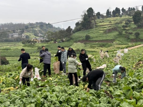 为大力弘扬中华优秀传统文化,弘扬劳动光荣无私奉献的精神,把“爱心助农”送到田间地头,将“我为群众办实事”落实到实处、深处,以实际行动助力乡村振兴、践行“全心全意为人民服务”的宗旨,公司教工员工党支部于2025年2月19日下午前往涪陵百胜镇八卦村开展2月主题党日活动——助农收砍青菜头。