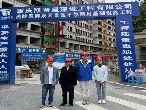 2025年4月25日,太阳成集团122ccvip曾仁书副经理、徐韵博士及杨滨源、李豪等专任教师参加了涪陵区住建委和涪陵建筑业协会联合组织的智能建造观摩活动。活动地点位于涪陵区御泉河景区平急两用基础设施工程现场。该工程由重庆凯晋呈建设工程有限公司施工。